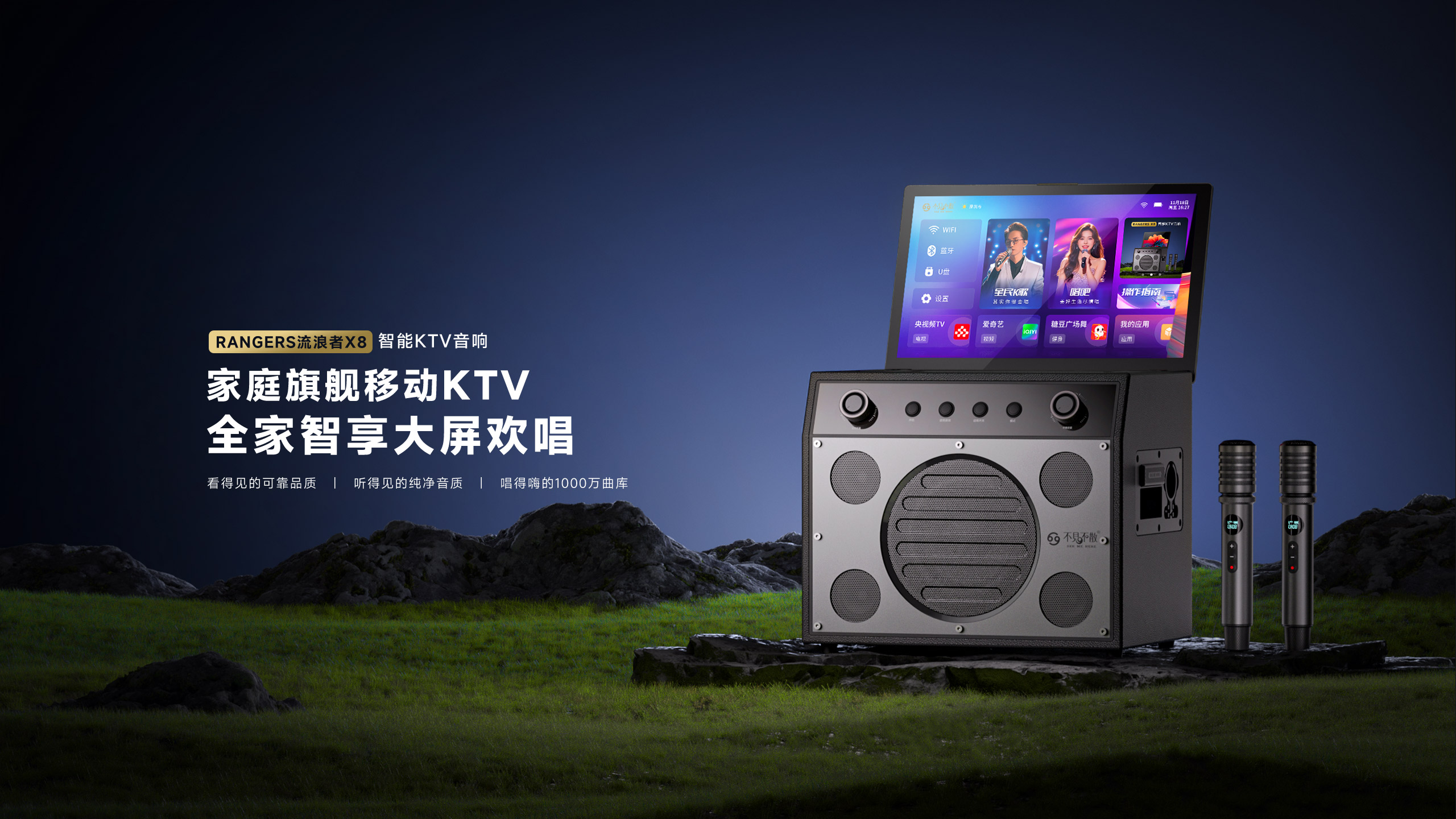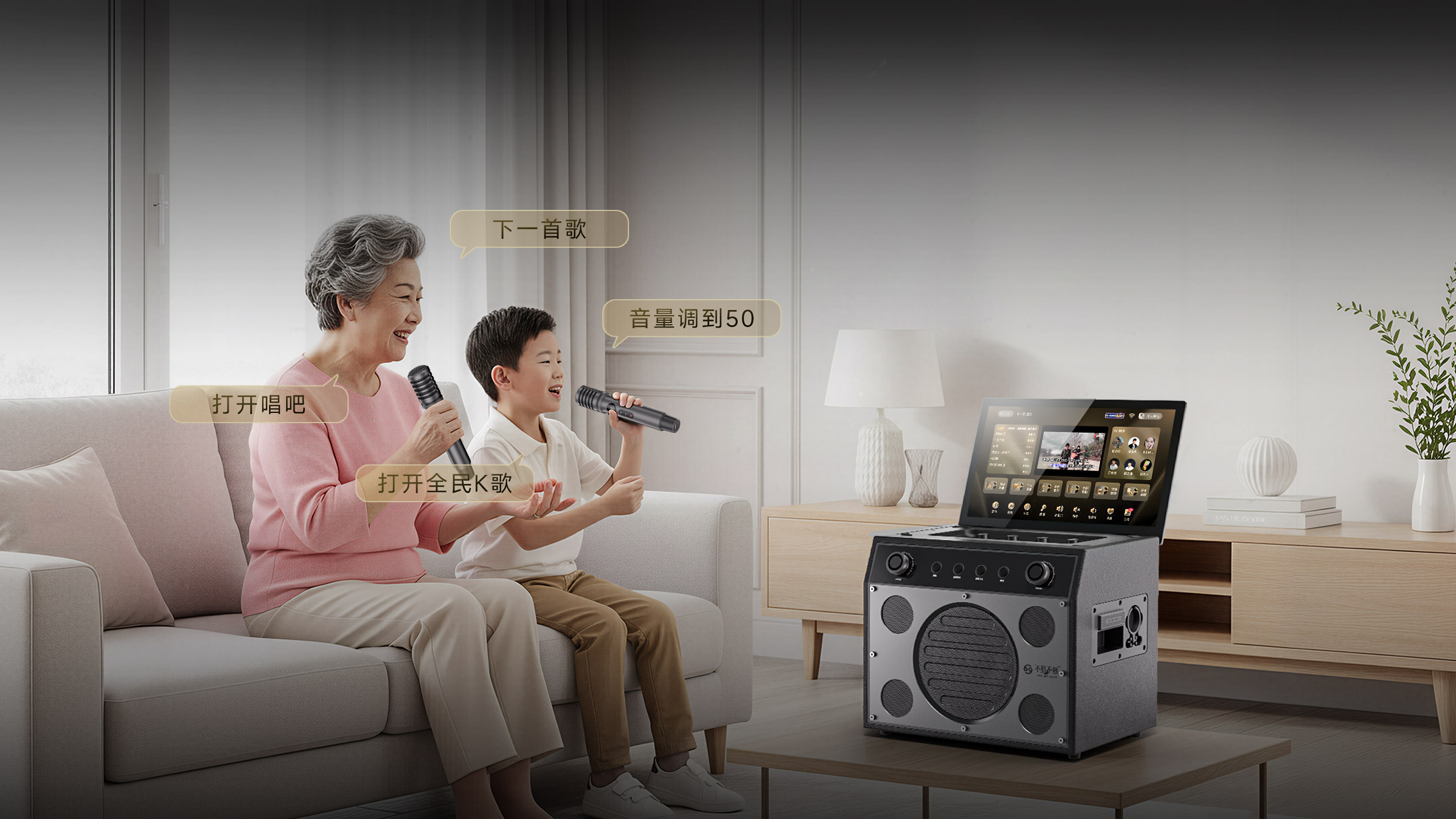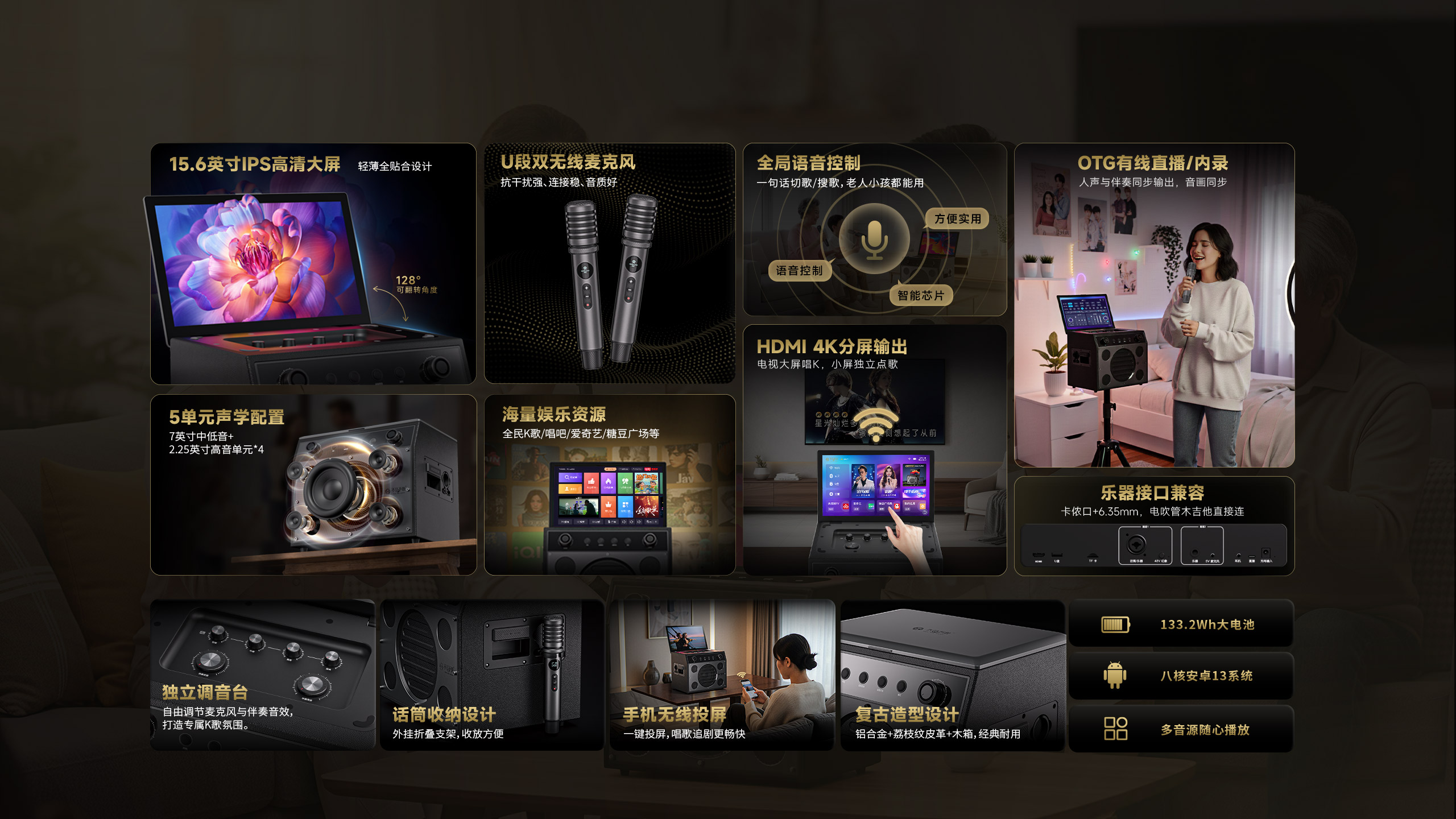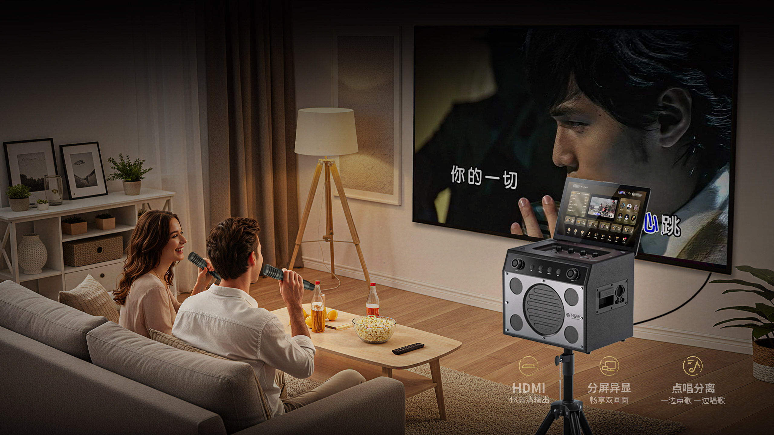 双正版K歌平台、1000万首曲库、全局AI智能语音、HDMI 4K分屏输出、